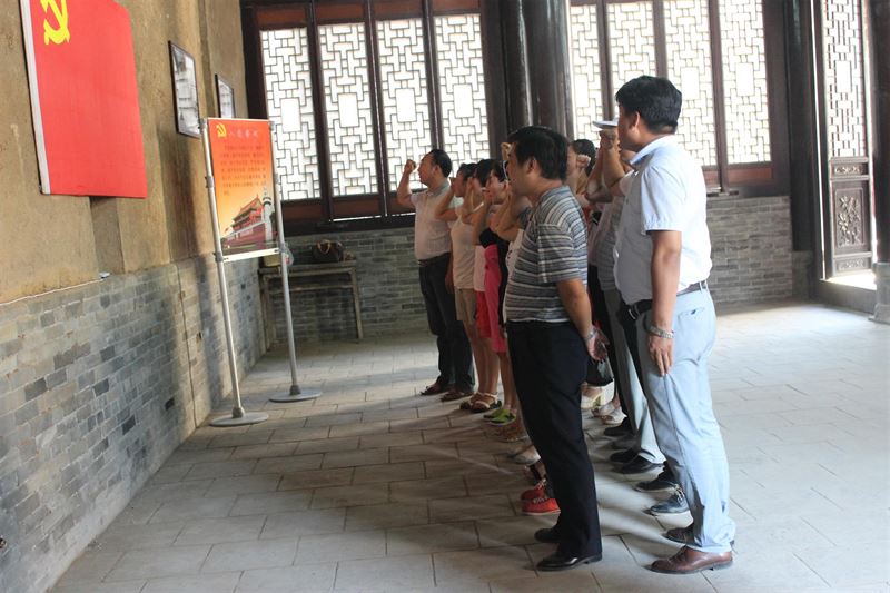 全體人員通過參觀紀(jì)念館,詳細(xì)了解了安吳堡青訓(xùn)班的創(chuàng)建背景、發(fā)展過程和革命成果。在一幅幅歷史照片前,在一件件陳列文物前,大家不時駐足凝望,認(rèn)真聆聽講解,親身感受中國共產(chǎn)黨團(tuán)結(jié)帶領(lǐng)進(jìn)步青年投身抗日戰(zhàn)爭的激情歲月。在黨旗前,大家整齊列隊,支部負(fù)責(zé)人武向川帶領(lǐng)重溫入黨誓詞,做出了共產(chǎn)黨員的莊嚴(yán)承諾,將立足本職工作,用自己的實際行動,積極踐行“三嚴(yán)三實”,為公司經(jīng)營發(fā)展模范帶頭,沖鋒陷陣,為建設(shè)富強(qiáng)、民主、文明、和諧的社會主義國家做出更大貢獻(xiàn)。