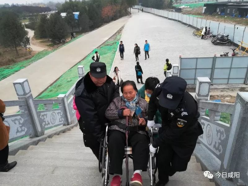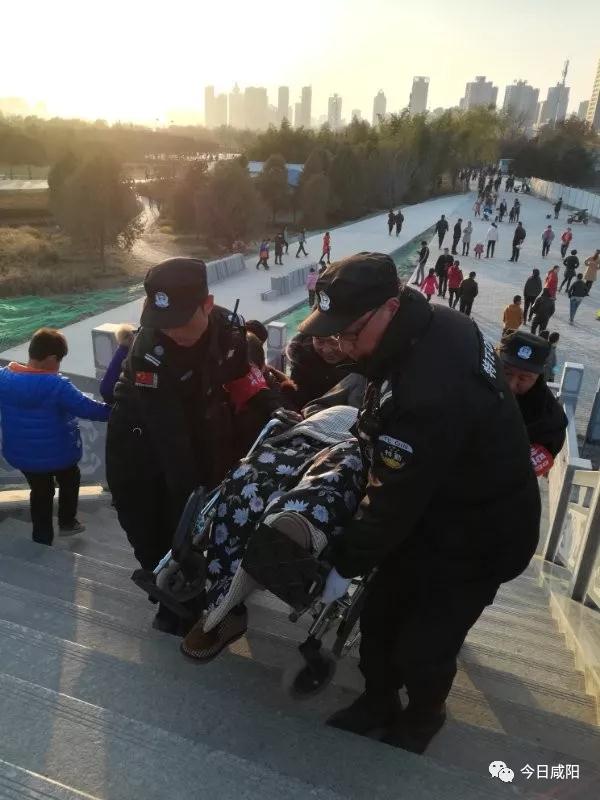 古渡廊橋上的美麗身影:特勤抬坐輪椅市民上下樓梯
