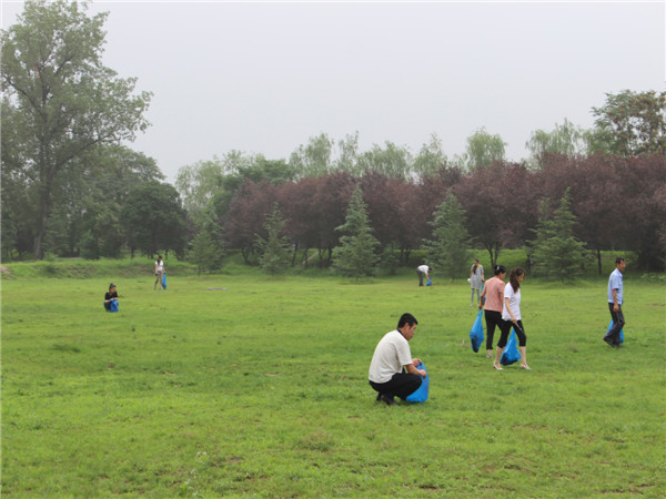 一大早,趙總親自帶隊,魏總協(xié)助配合,公司工會、團支部積極協(xié)調(diào),合理將河南街、安谷苑、統(tǒng)一大樓、陜西中醫(yī)學(xué)院項目部以及機關(guān)人員分配于東西兩側(cè)草坪。在公司領(lǐng)導(dǎo)親力親為的感召下,全體員工干勁十足,經(jīng)過近兩個小時的清理,還原了景區(qū)綠化的整潔環(huán)境。