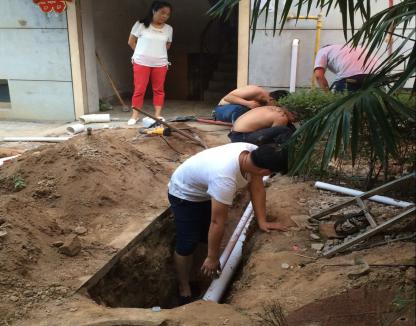 時間已近十二點,維修人員顧不上吃飯休息,歷時一個多小時開挖地面一米左右,查找出了問題管網(wǎng),該段管網(wǎng)發(fā)生斷裂,必須斷水進行更換維修。為了盡快完成維修,不影響業(yè)主正常生活,維修人員頂著烈日,在又小又臟又悶熱的地洞里進行搶修,最終在下午五點順利完成了維修工作,恢復(fù)了正常用水。
