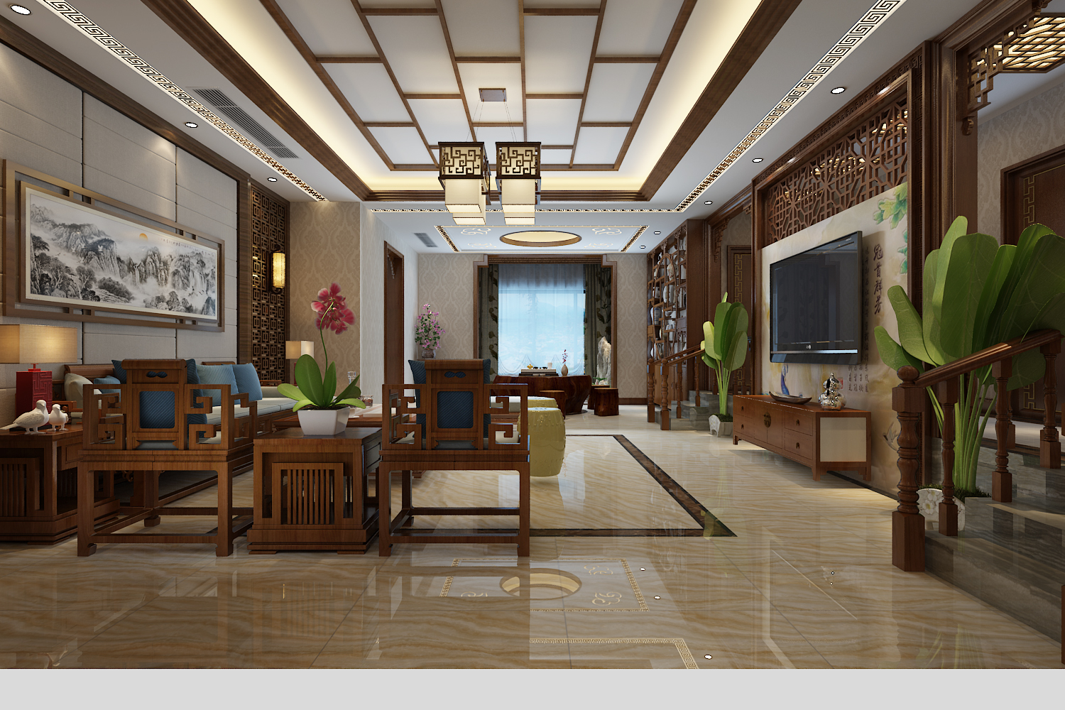 中式風(fēng)格追求的是一種修身養(yǎng)性的生活境界,中國傳統(tǒng)室內(nèi)裝飾藝術(shù)的特點是總體布局對稱均衡,端正穩(wěn)健,而在裝飾細(xì)節(jié)上崇尚自然情趣,花鳥、魚蟲等精雕細(xì)琢,富于變化,充分體現(xiàn)出中國傳統(tǒng)美學(xué)精神。